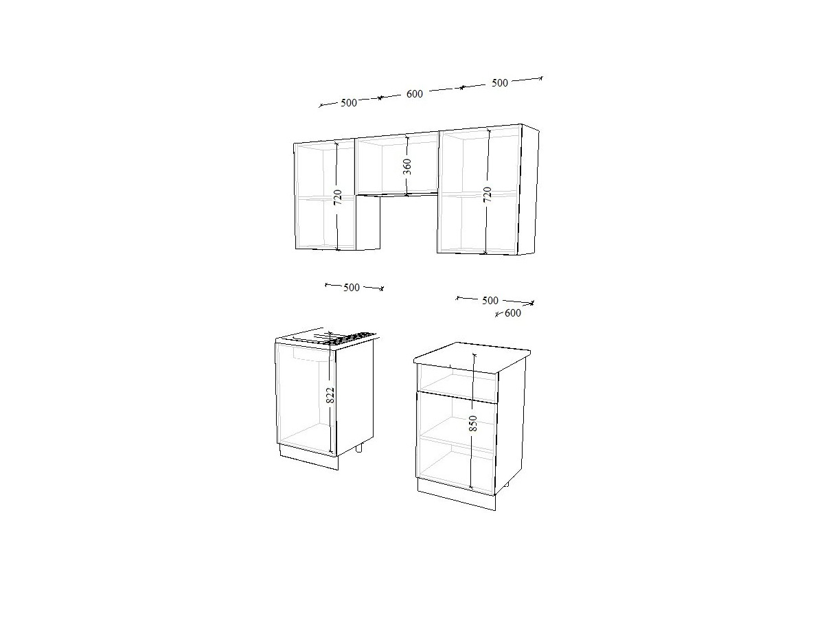 - высота верхних шкафов 720 мм