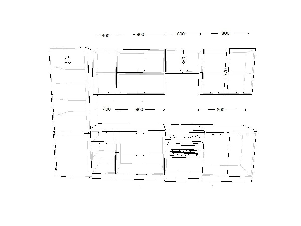 Кухонная мойка, стеновая панель, посудосушитель, планки для столешницы в комплект не входят.