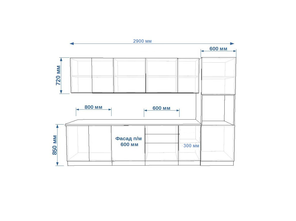 - Кухонный гарнитур арт 3 Фаска Тальк 2900 мм
