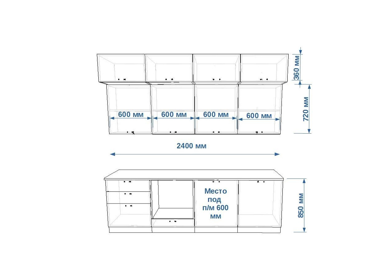 - высота верхних шкафов 720 мм