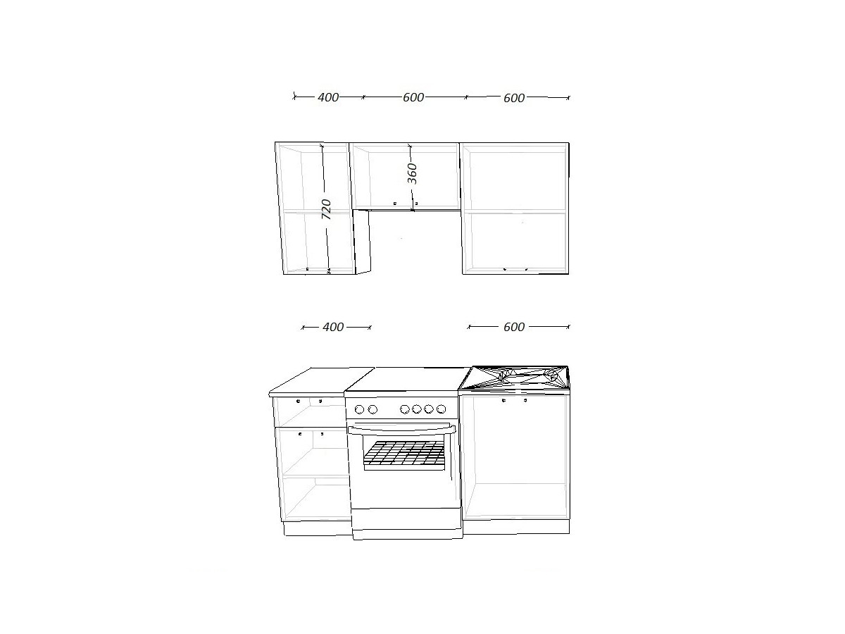 - высота верхних шкафов 720 мм