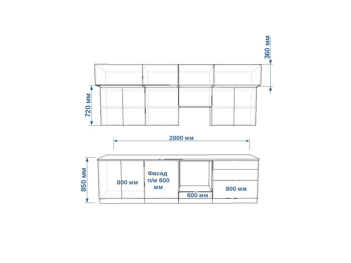 - Кухонный гарнитур арт 47 Лайн Обсидиан Тальк 2800 мм