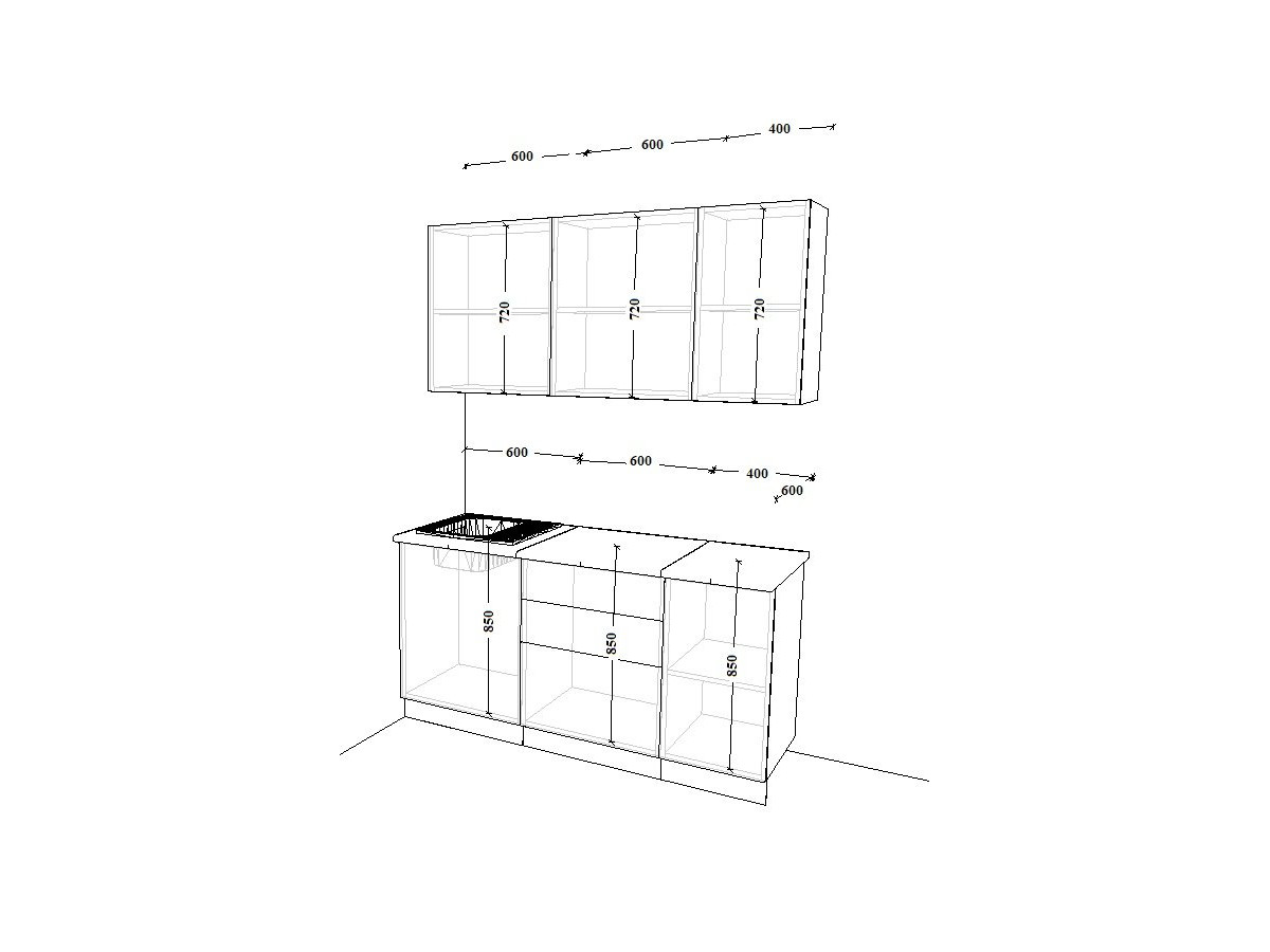 - высота верхних шкафов 720 мм