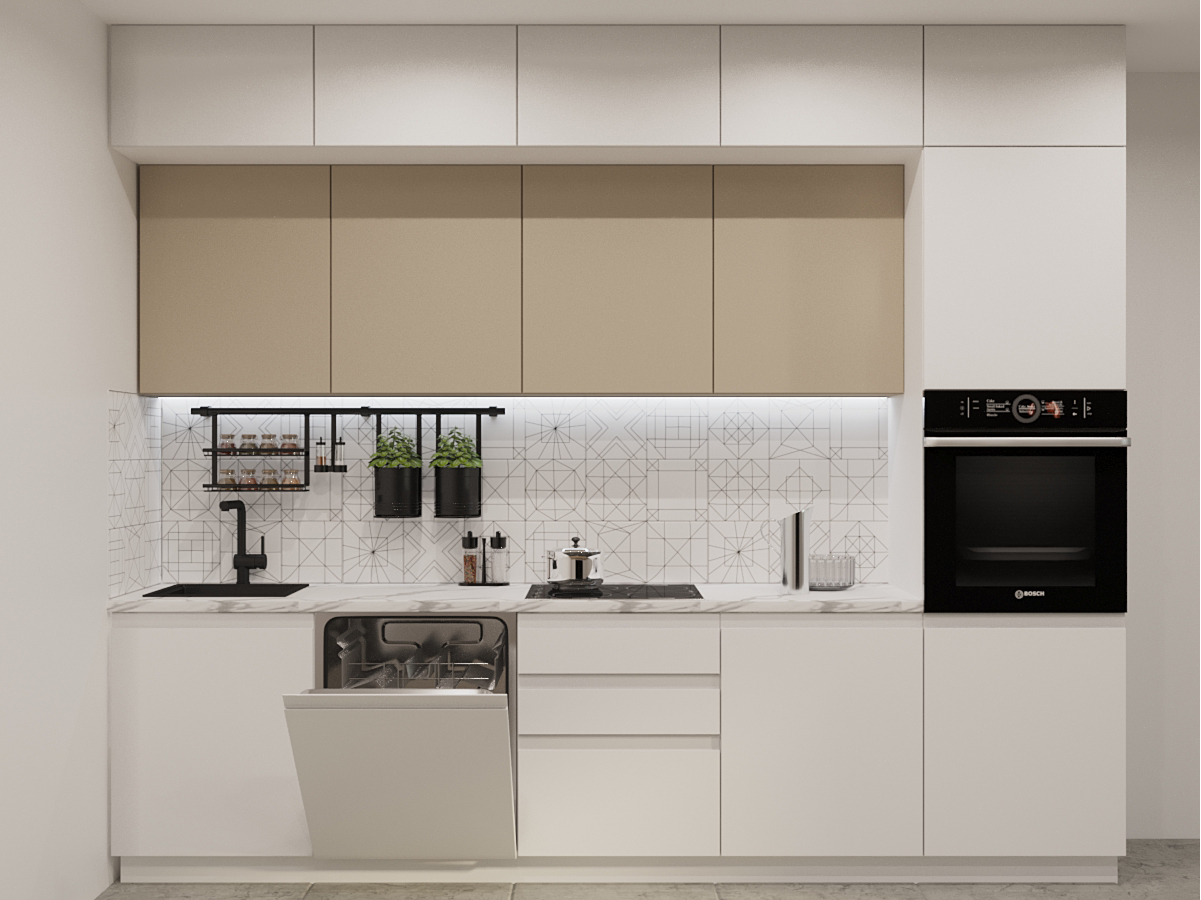 Кухонная мойка, стеновая панель, посудосушитель, планки для столешницы в комплект не входят.