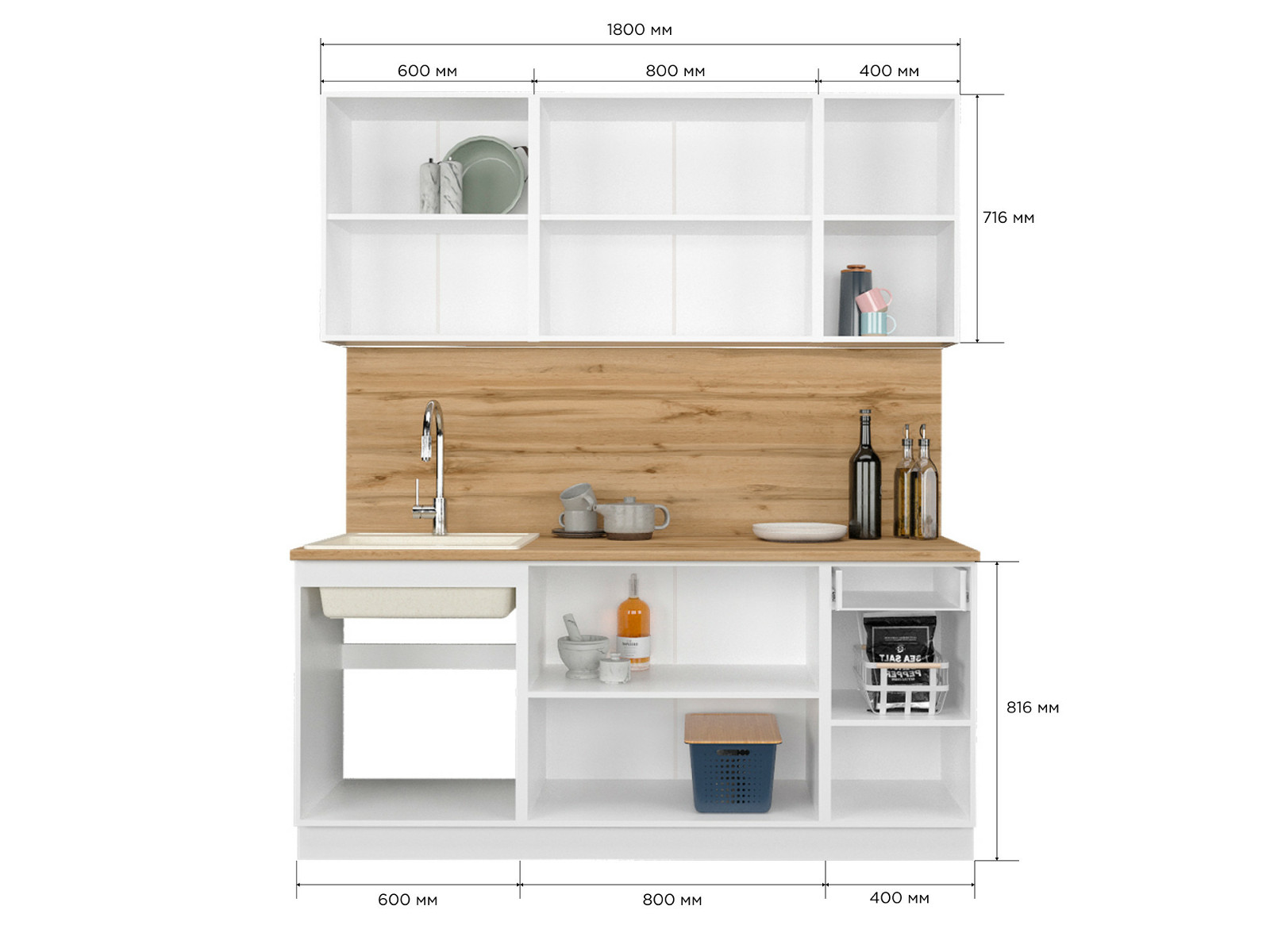 - Кухонный гарнитур Эстетик 1800 мм МДФ Вотан/Белый