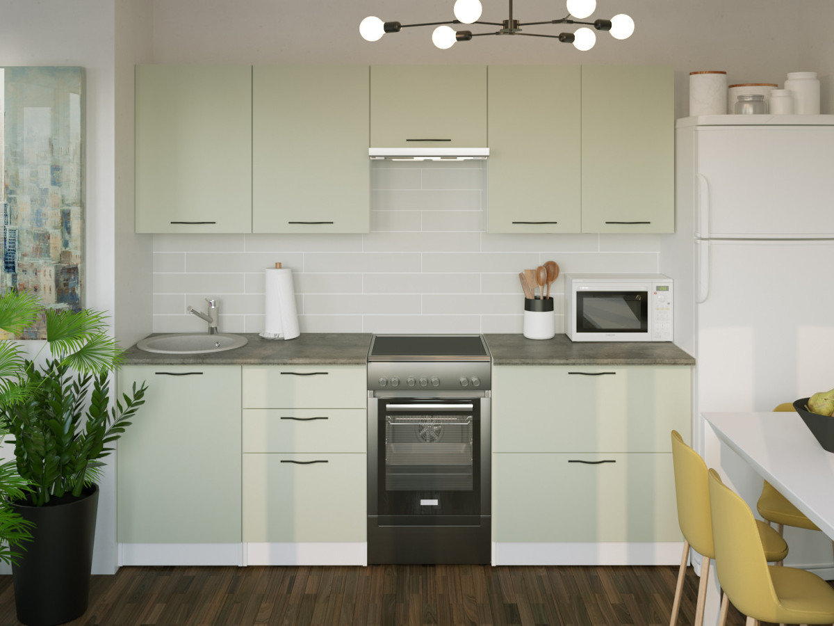 Мойка, смеситель, стеновая панель и посудосушитель в комплект гарнитура не входят.