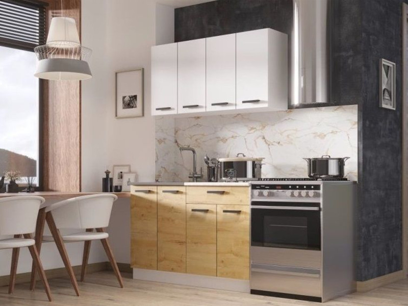 - Кухонный гарнитур Хозяюшка ЛДСП 1200 белый гладкий/дуб вотан