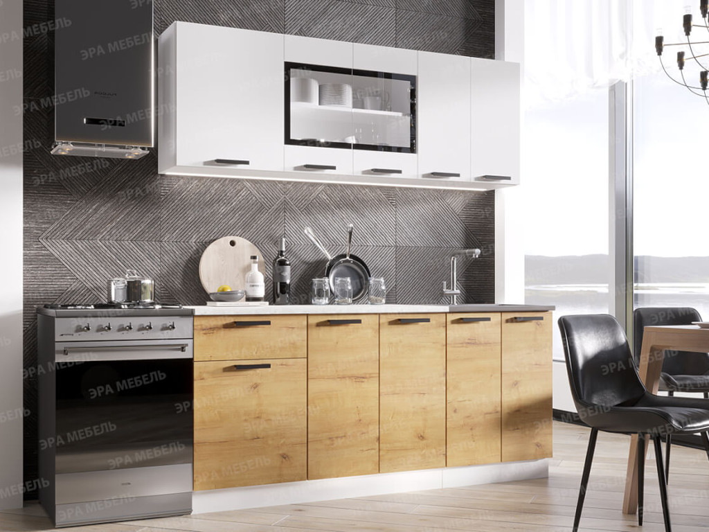 - Кухонный гарнитур Хозяюшка ЛДСП 1800 белый гладкий/дуб вотан