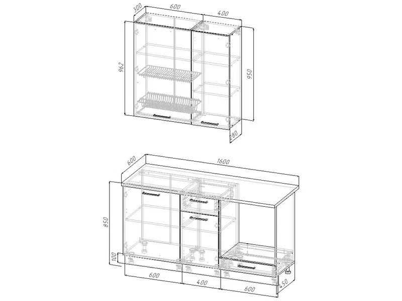 Кухонный гарнитур Жемчуг 1600 (верх 950 мм)