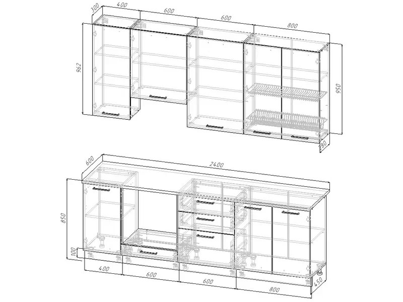 Кухонный гарнитур Жемчуг 2400 (верх 950 мм)