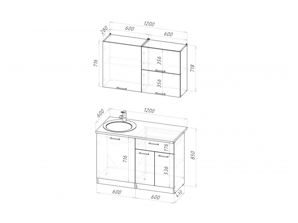 Мойка, смеситель, стеновая панель и посудосушитель в комплект гарнитура не входят.