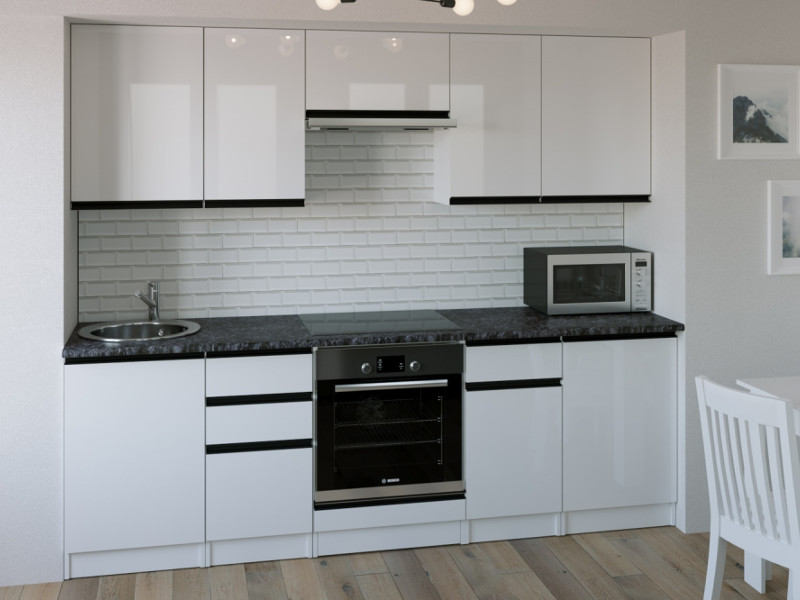 Мойки, смесители и посудосушители в комплекты гарнитуров не входят.