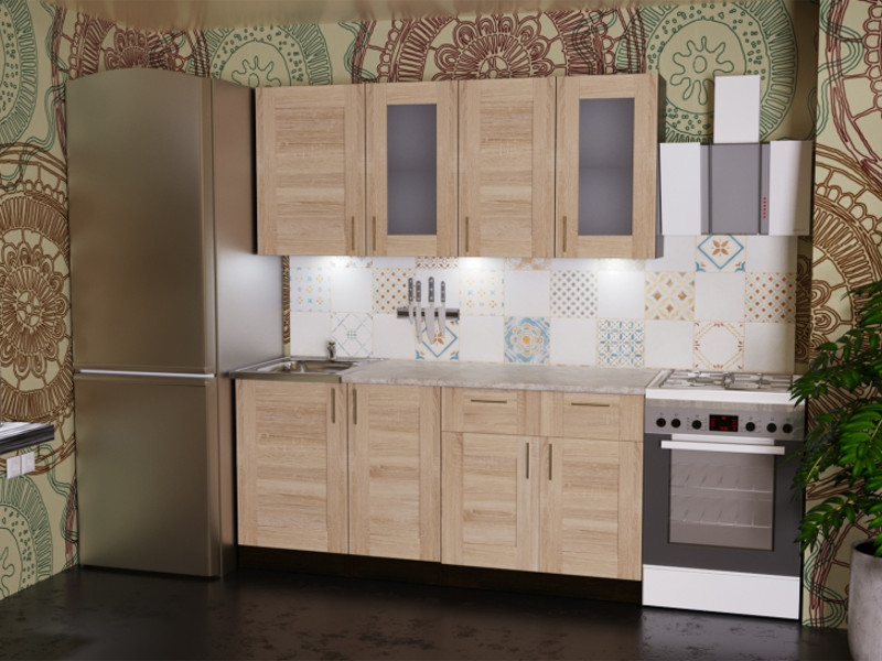 Мойка, смеситель, стеновая панель и посудосушитель в комплект гарнитура не входят.