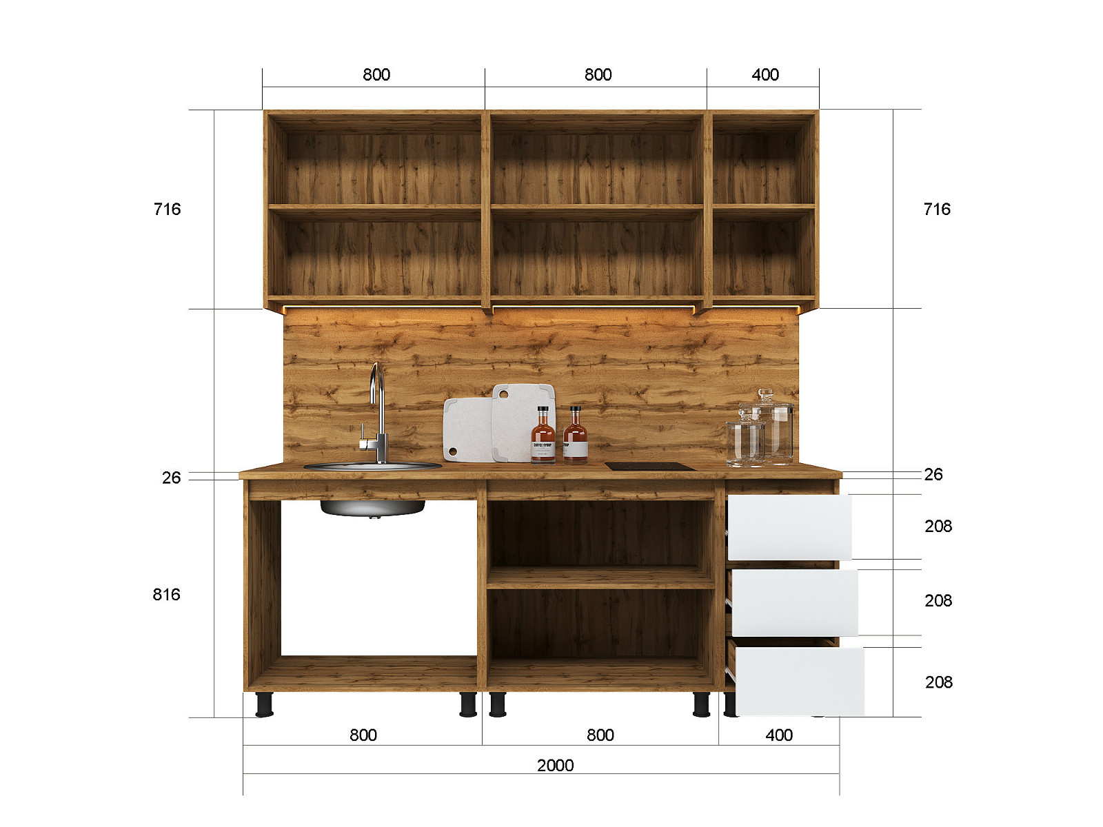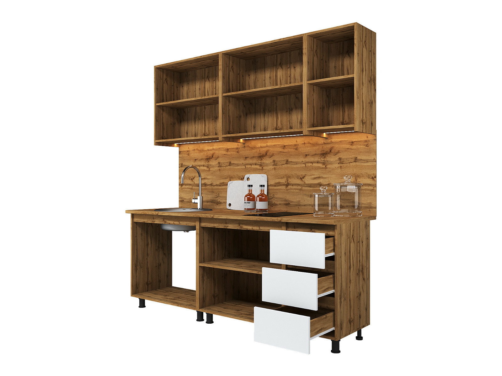 - Кухонный гарнитур Норди Reform 2000 мм ЛДСП Вотан/Белый