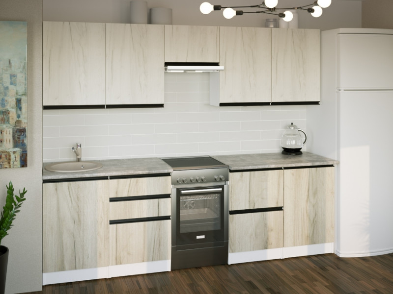 Мойка, смеситель, стеновая панель и посудосушитель в комплект гарнитура не входят.