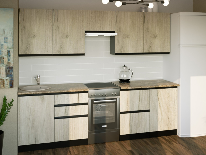 Мойка, смеситель, стеновая панель и посудосушитель в комплект гарнитура не входят.
