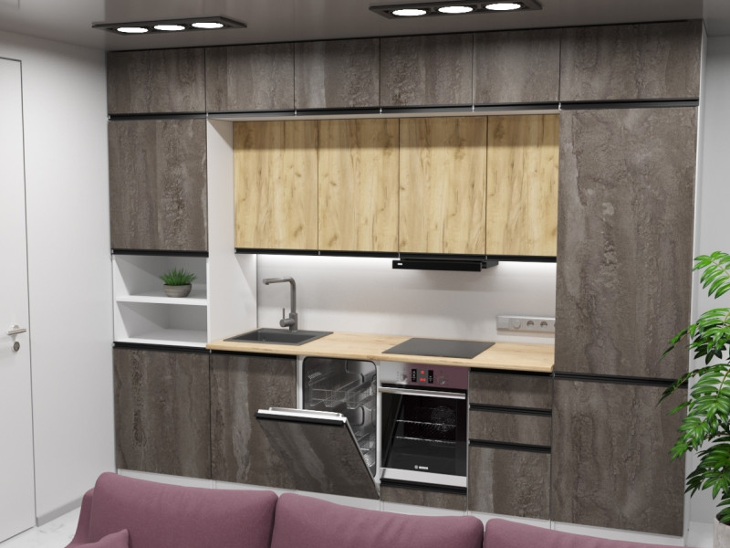 Мойка, смеситель, стеновая панель и посудосушитель в комплект гарнитура не входят.
