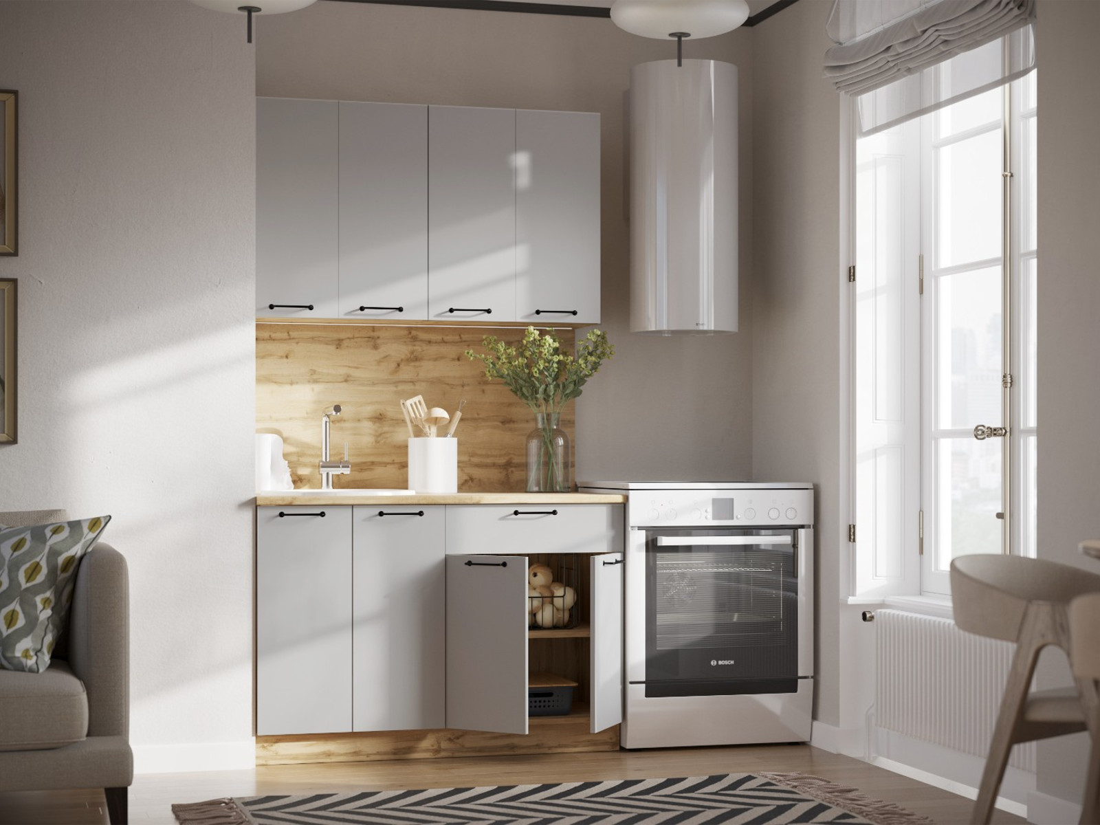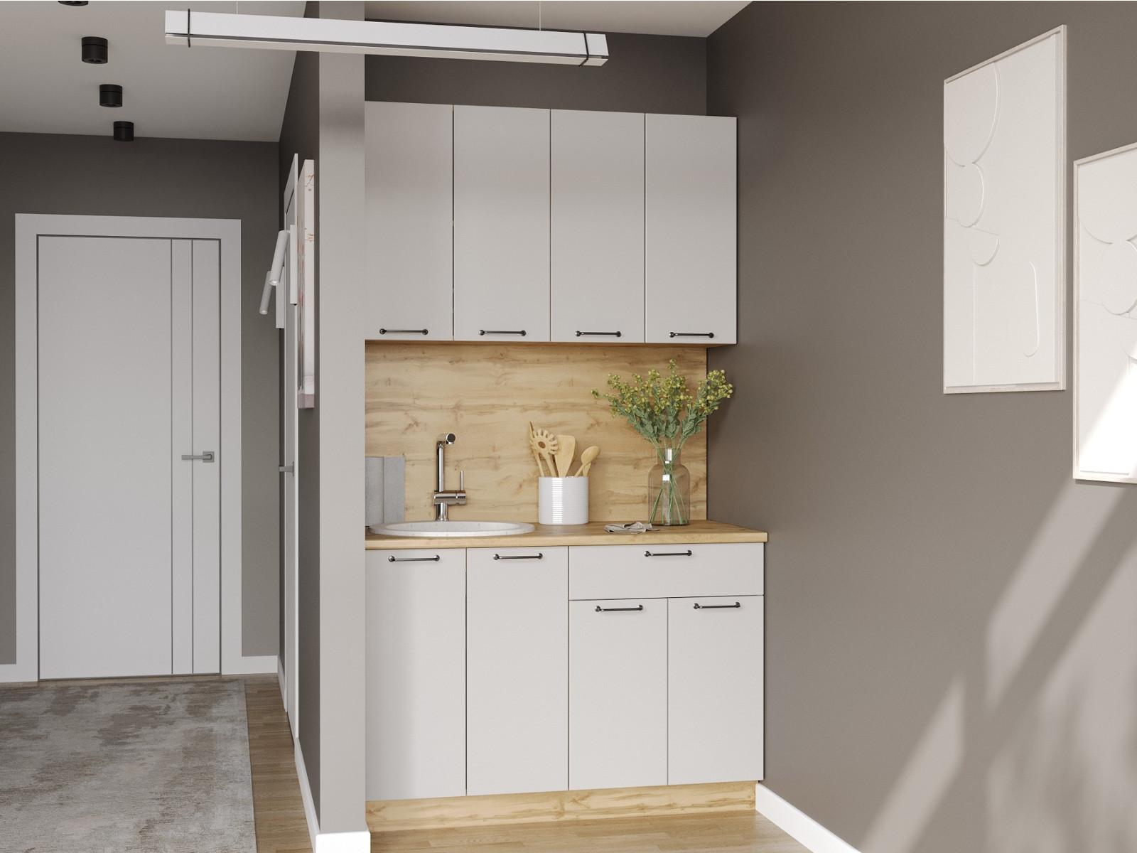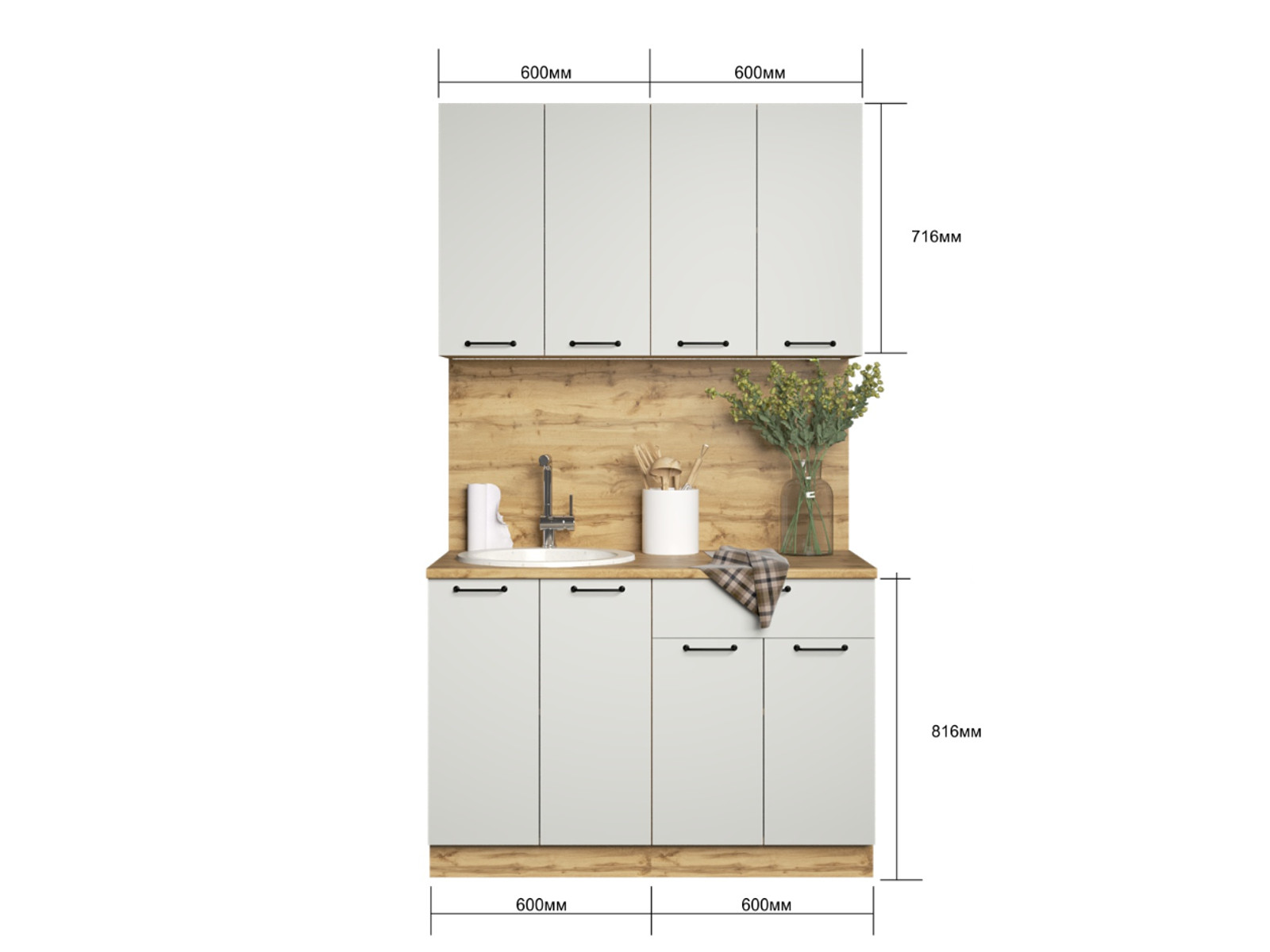 - Кухонный гарнитур Валерия 1200 мм МДФ Вотан/Серый