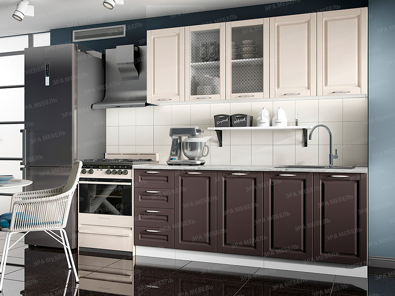 - Кухонный гарнитур Вита МДФ 2000 шато крем/шато арабика