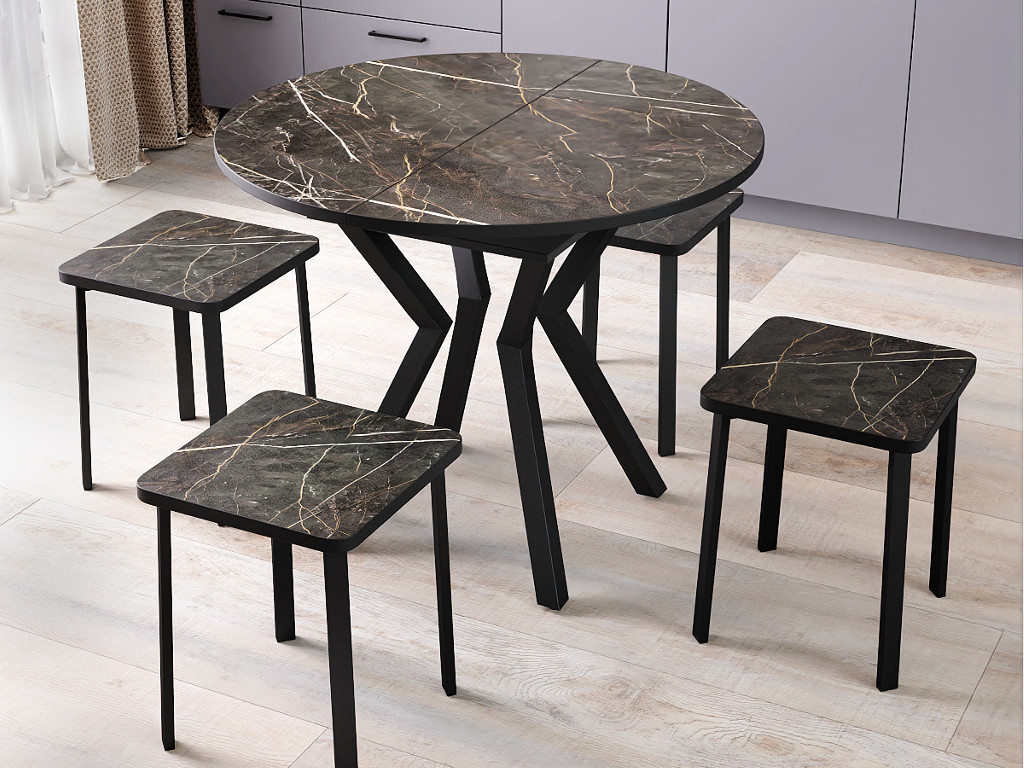 - Стол Лофт-круг раздвижной Пластик 0440-черная опора изогнутая ромб