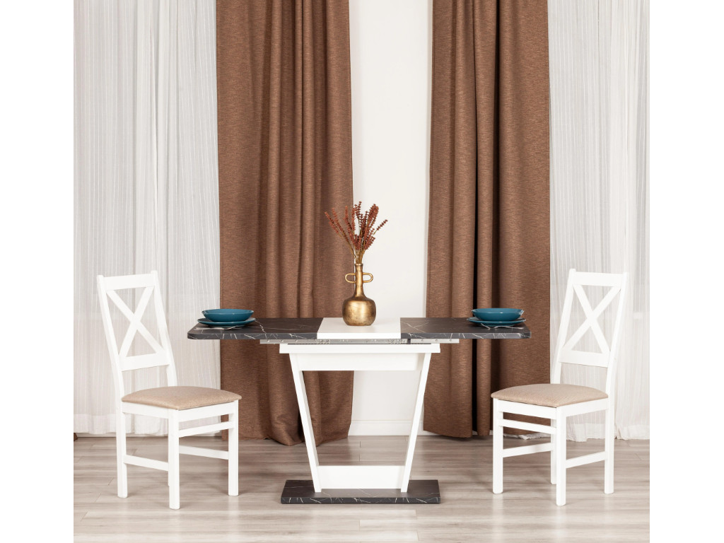 - Стол обеденный FOX раздвижной Мрамор черный/Белый