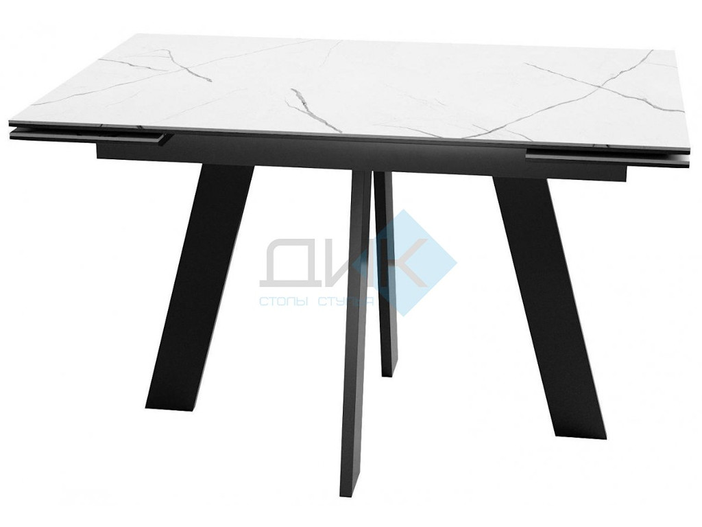 - Стол SKM 120 керамика белый мрамор/подстолье черное