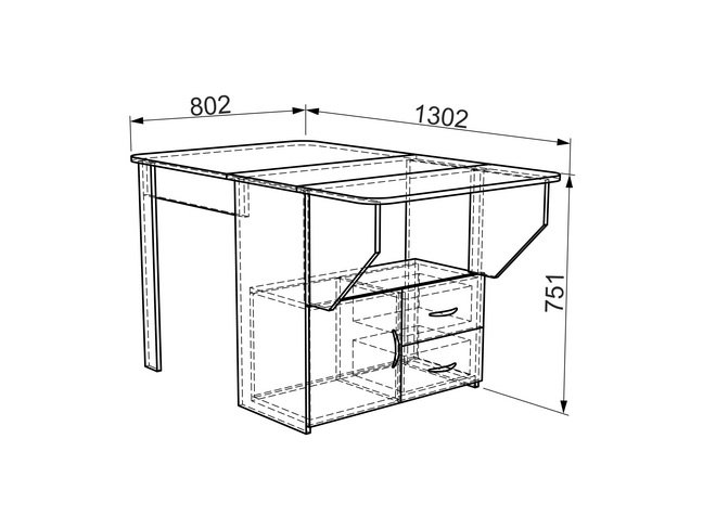 Размер стола в разложенном виде (Ш*Г*В): 382*802*751 мм