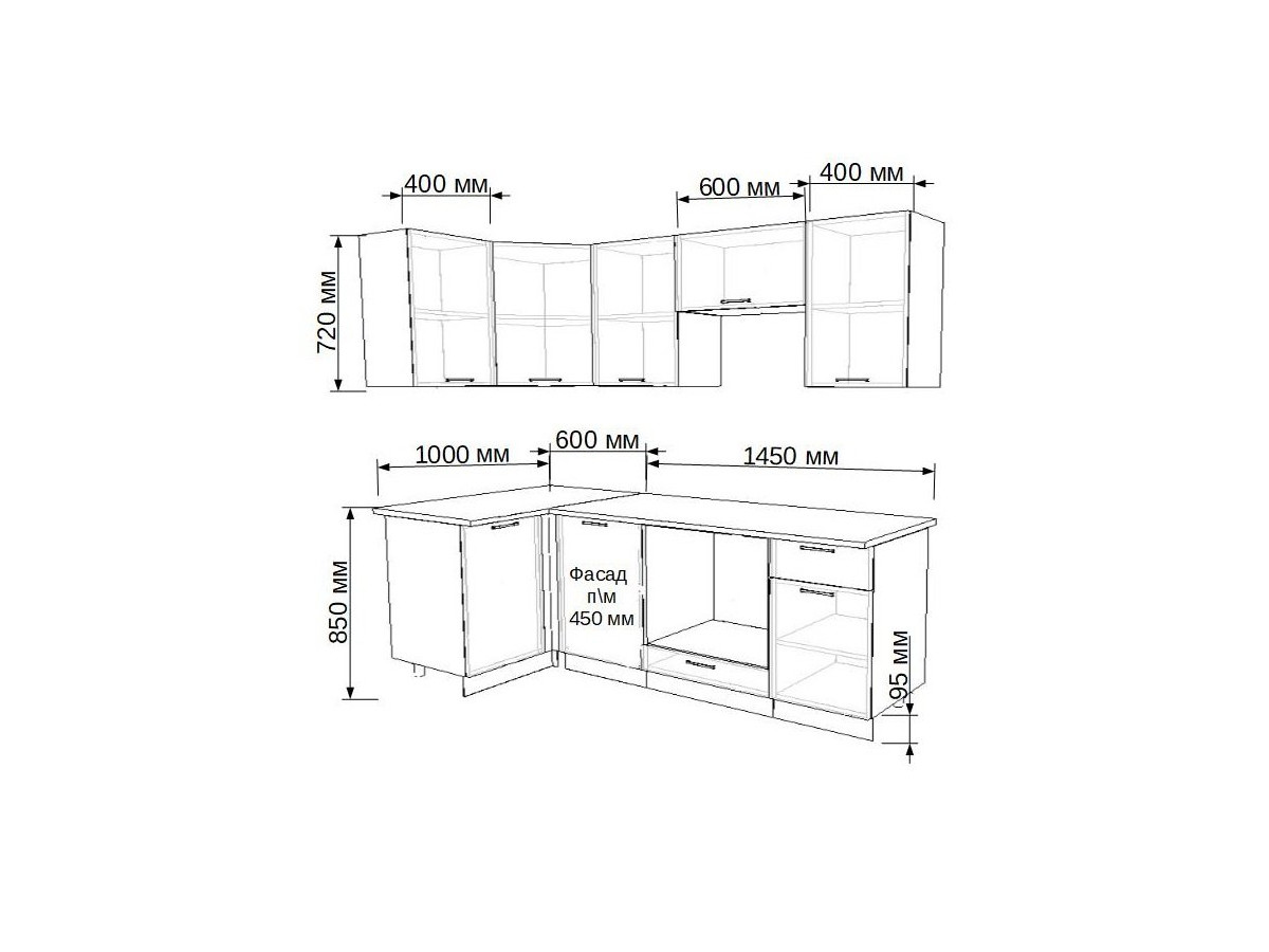 Кухонная мойка, стеновая панель, посудосушитель, планки для столешницы в комплект не входят.