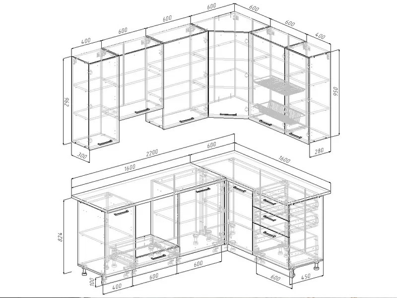 - Кухонный гарнитур Антрацит 2200х1600 (верх 950 мм)