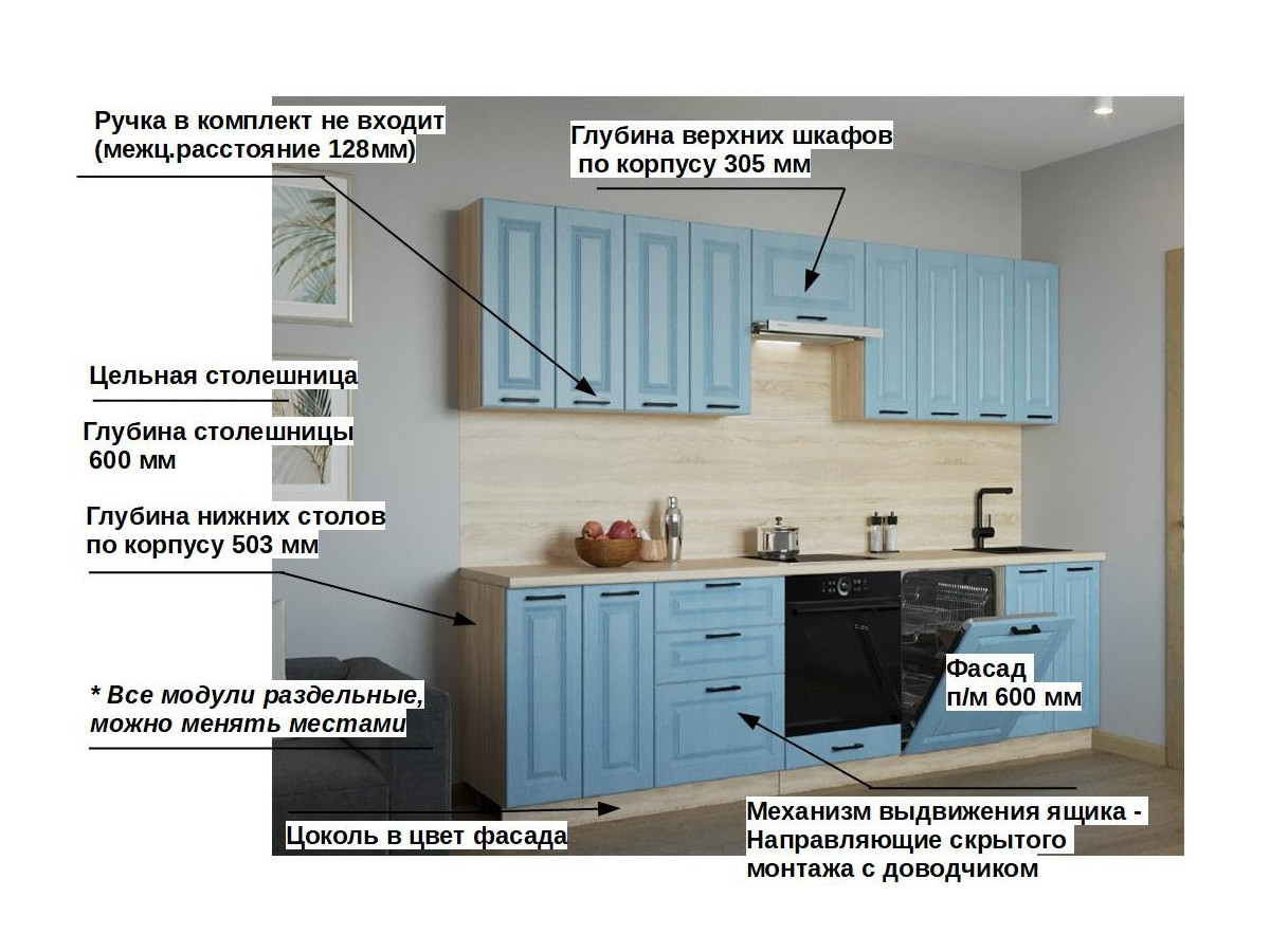 - Кухонный гарнитур арт 18 Роял Вуд Голубой Вегас 3000 мм