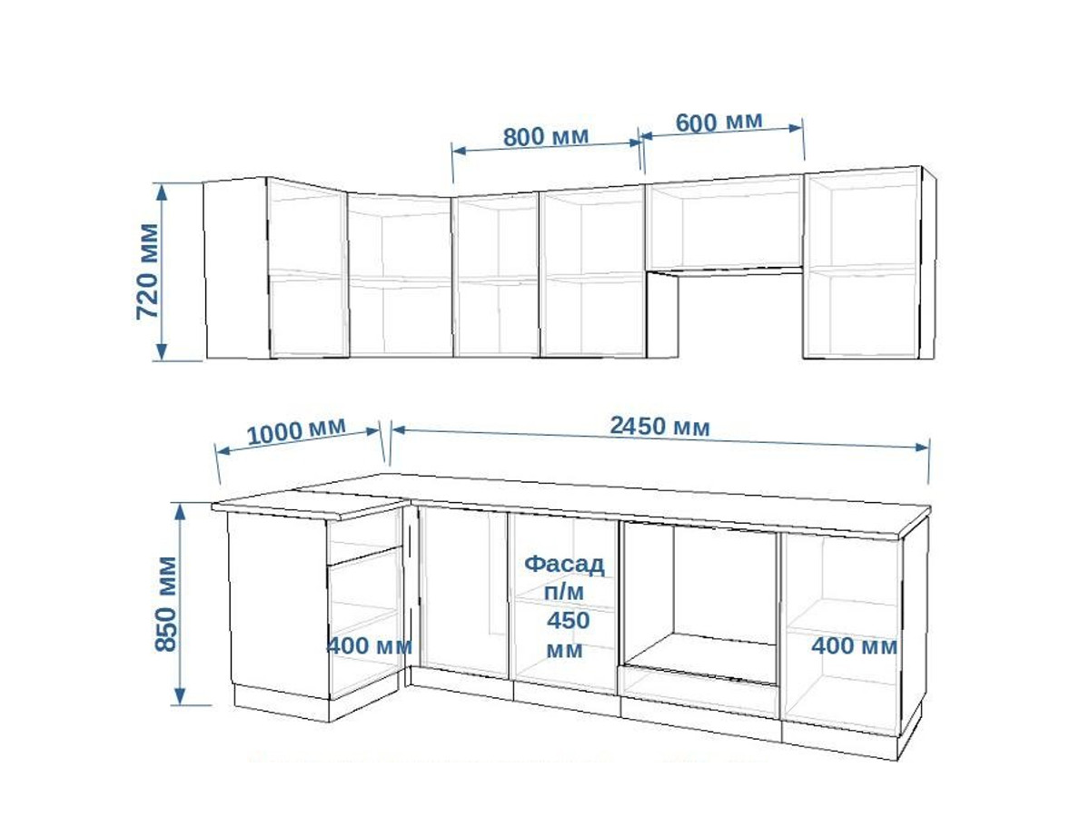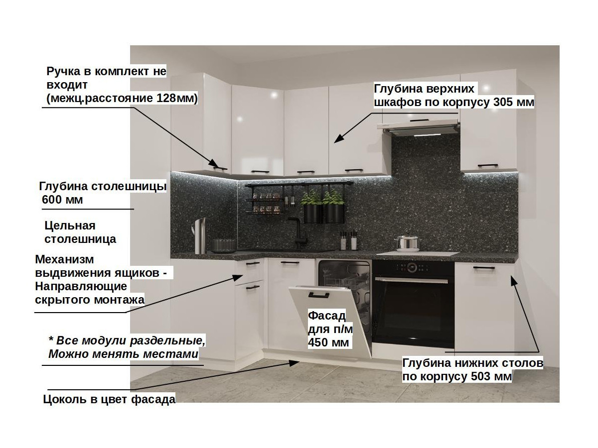 - Кухонный гарнитур арт 21 Белый глянец 1000х2450 мм