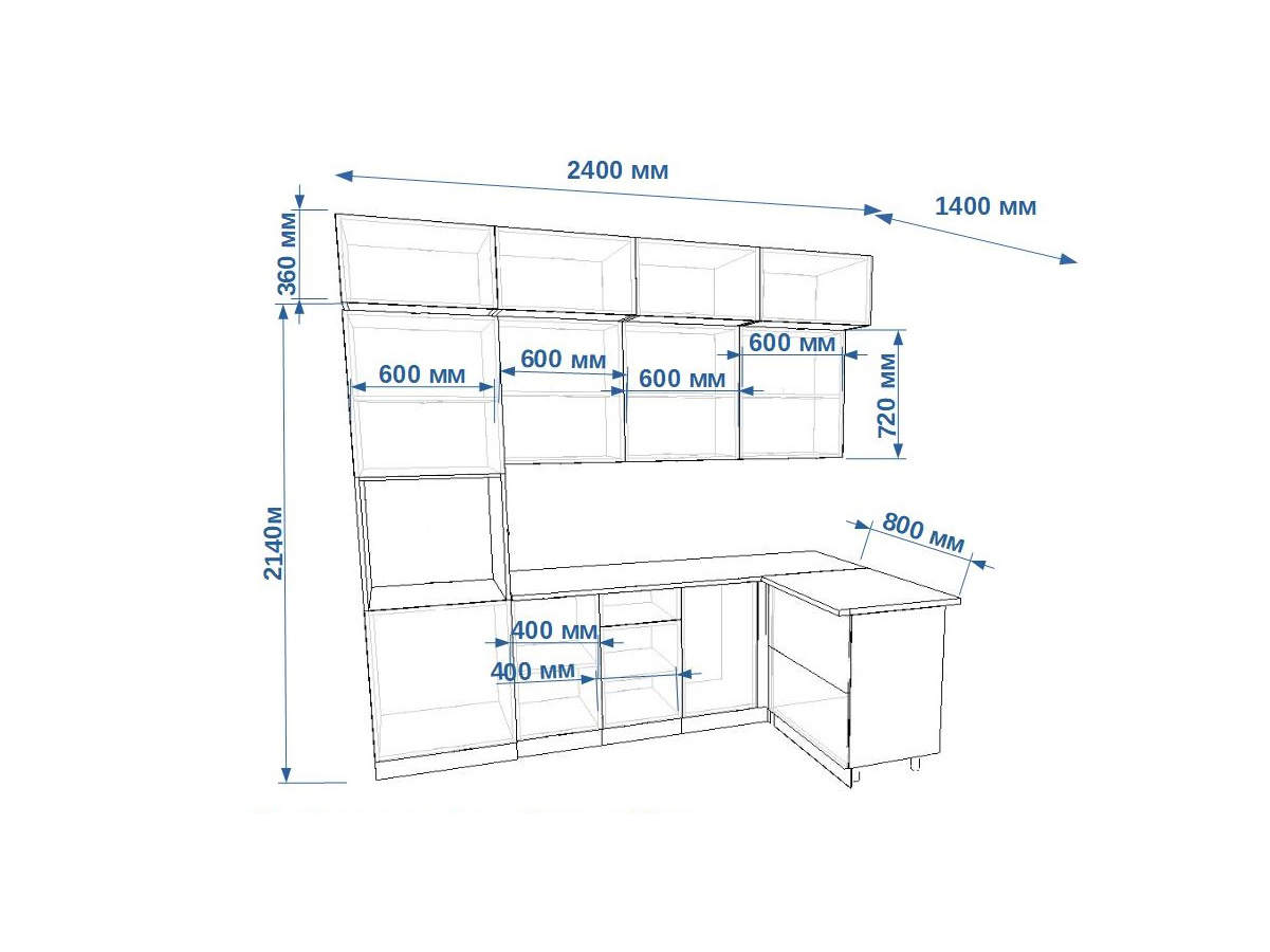 Кухонная мойка, стеновая панель, посудосушитель, планки для столешницы в комплект не входят.
