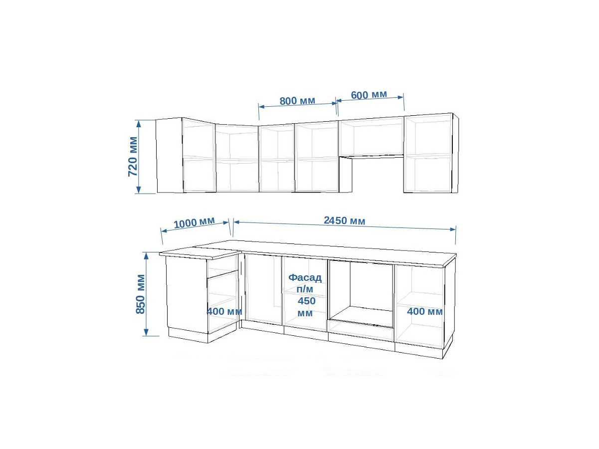 - Кухонный гарнитур арт 23 Лайн Тальк 1000х2450 мм