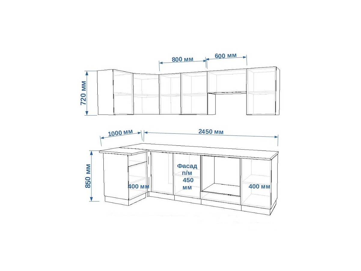 - Кухонный гарнитур арт 24 Лайн Обсидиан 1000х2450 мм
