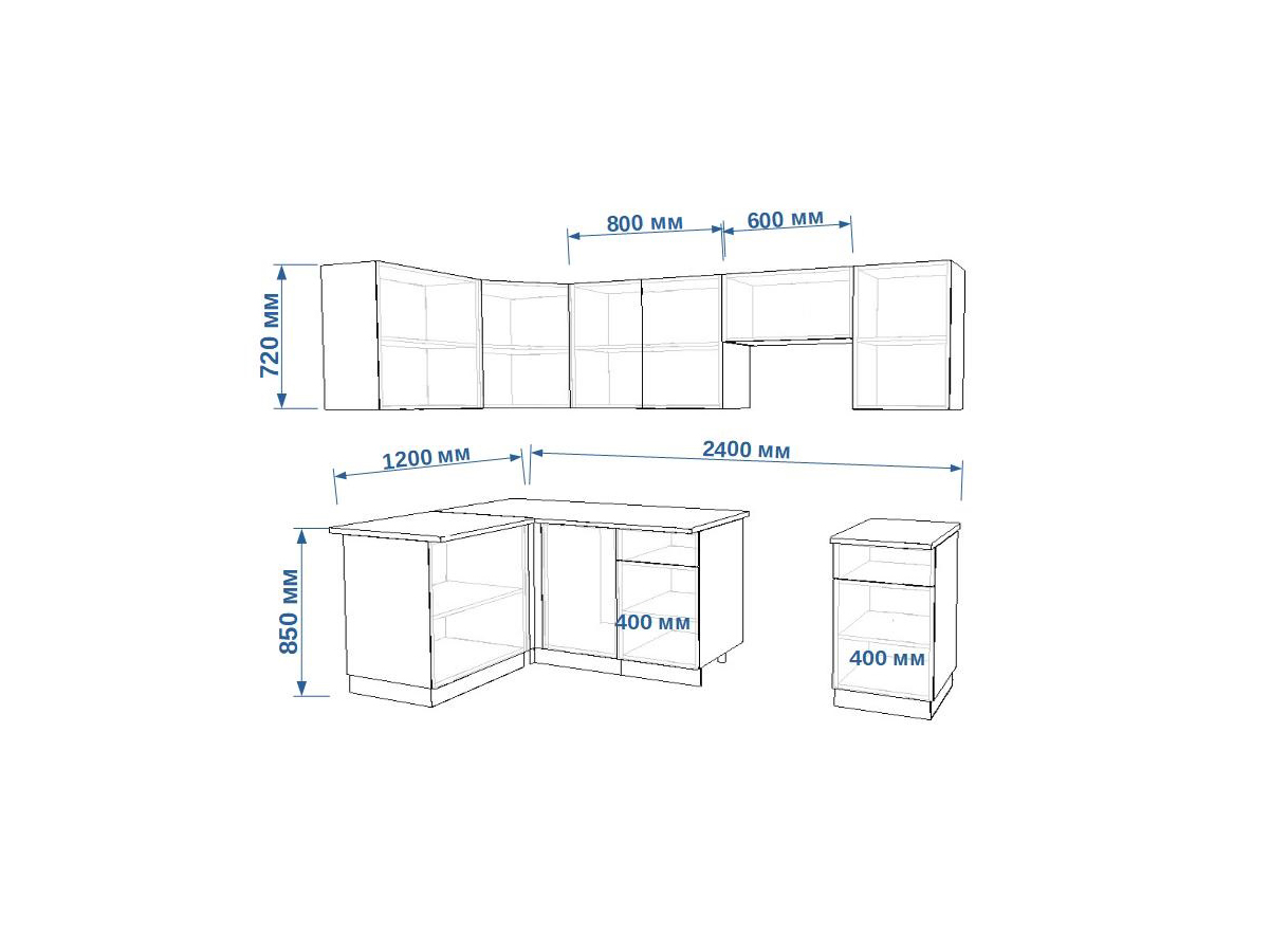 - высота верхних шкафов 720 мм