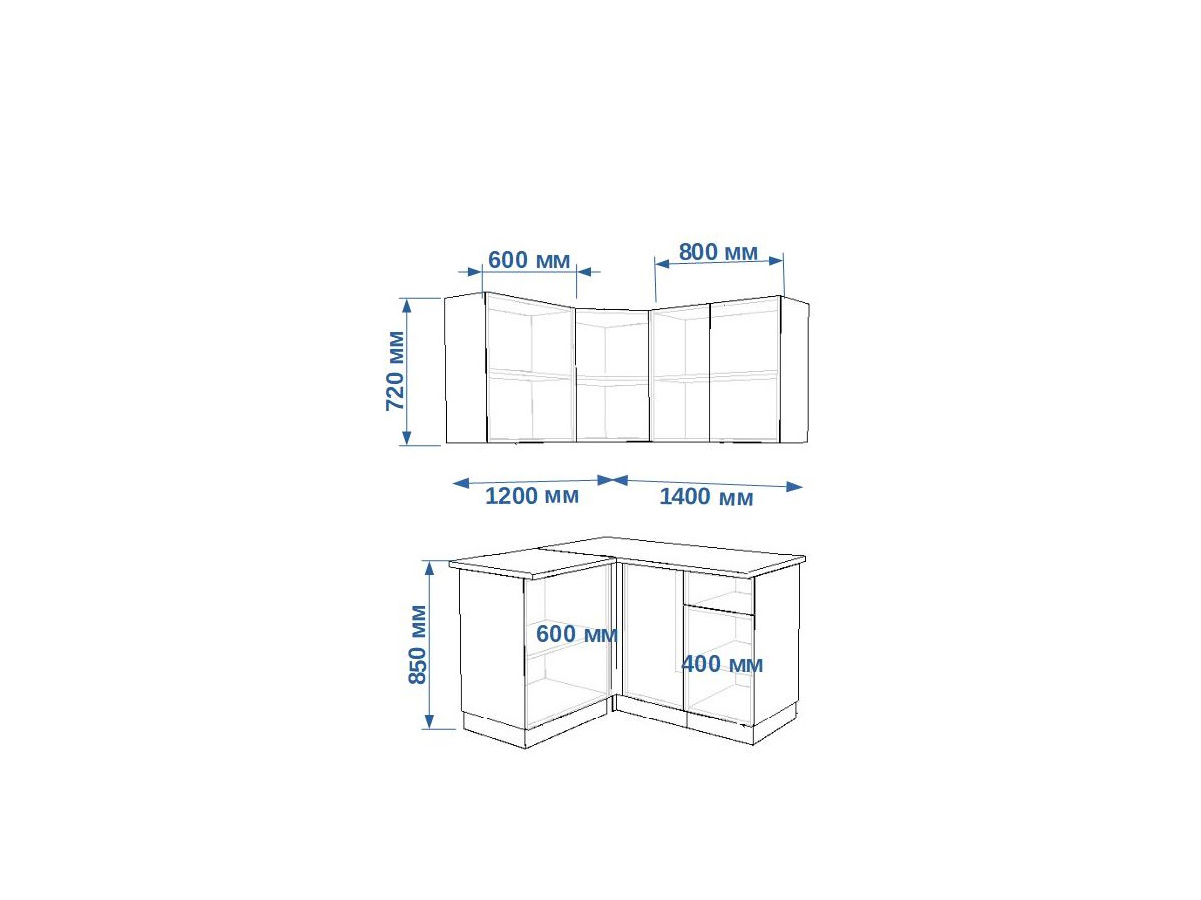 - высота верхних шкафов 720 мм