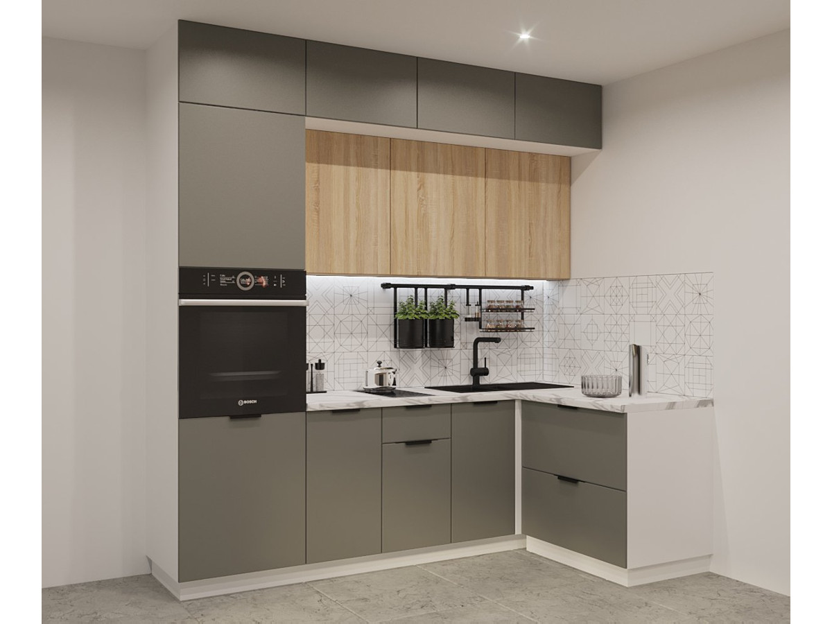 - Кухонный гарнитур арт 8 Фаска Обсидиан Дуб сонома 2400х1400 мм