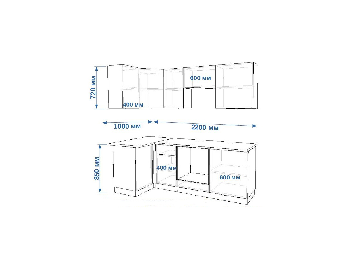 - высота верхних шкафов 720 мм