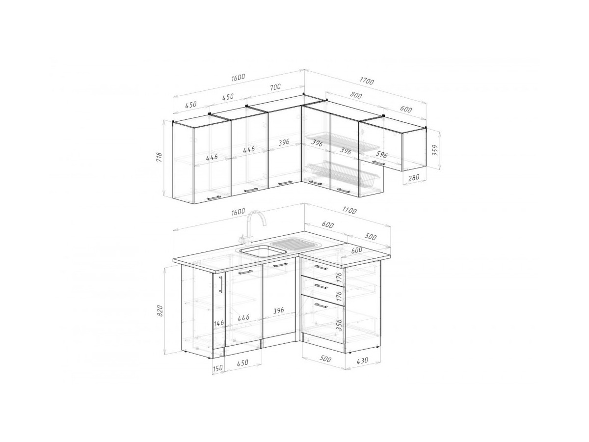 - Кухонный гарнитур Шелли мега прайм 1600х1700 мм