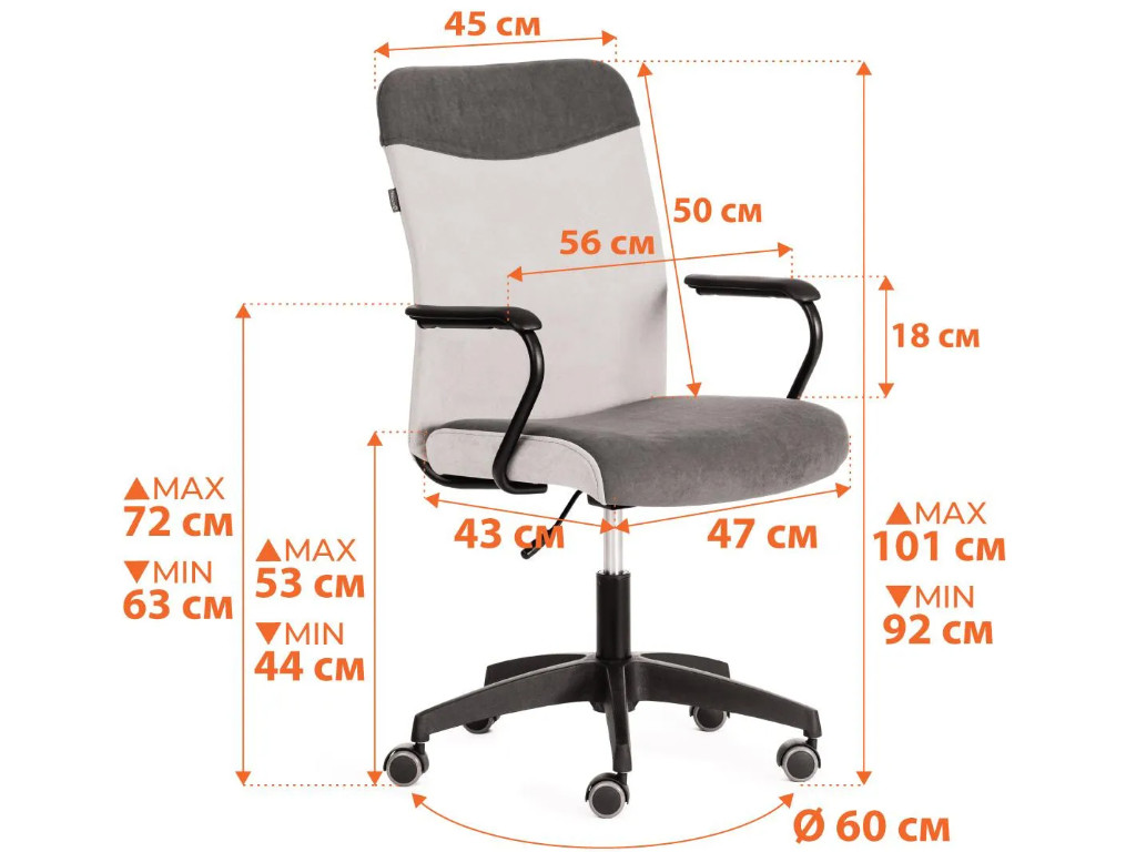 - Анатомическая спинка, удобная посадка, фиксированные подлокотники с мягкой накладкой
