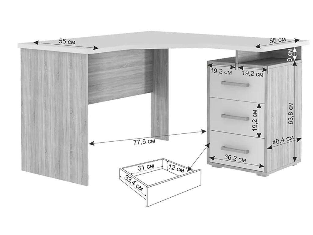 - Стол компьютерный 1200 угловой Лайт-2 белый