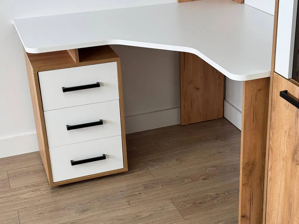 - Стол компьютерный 1200 угловой Лайт-2 дуб крафт золотой/белый