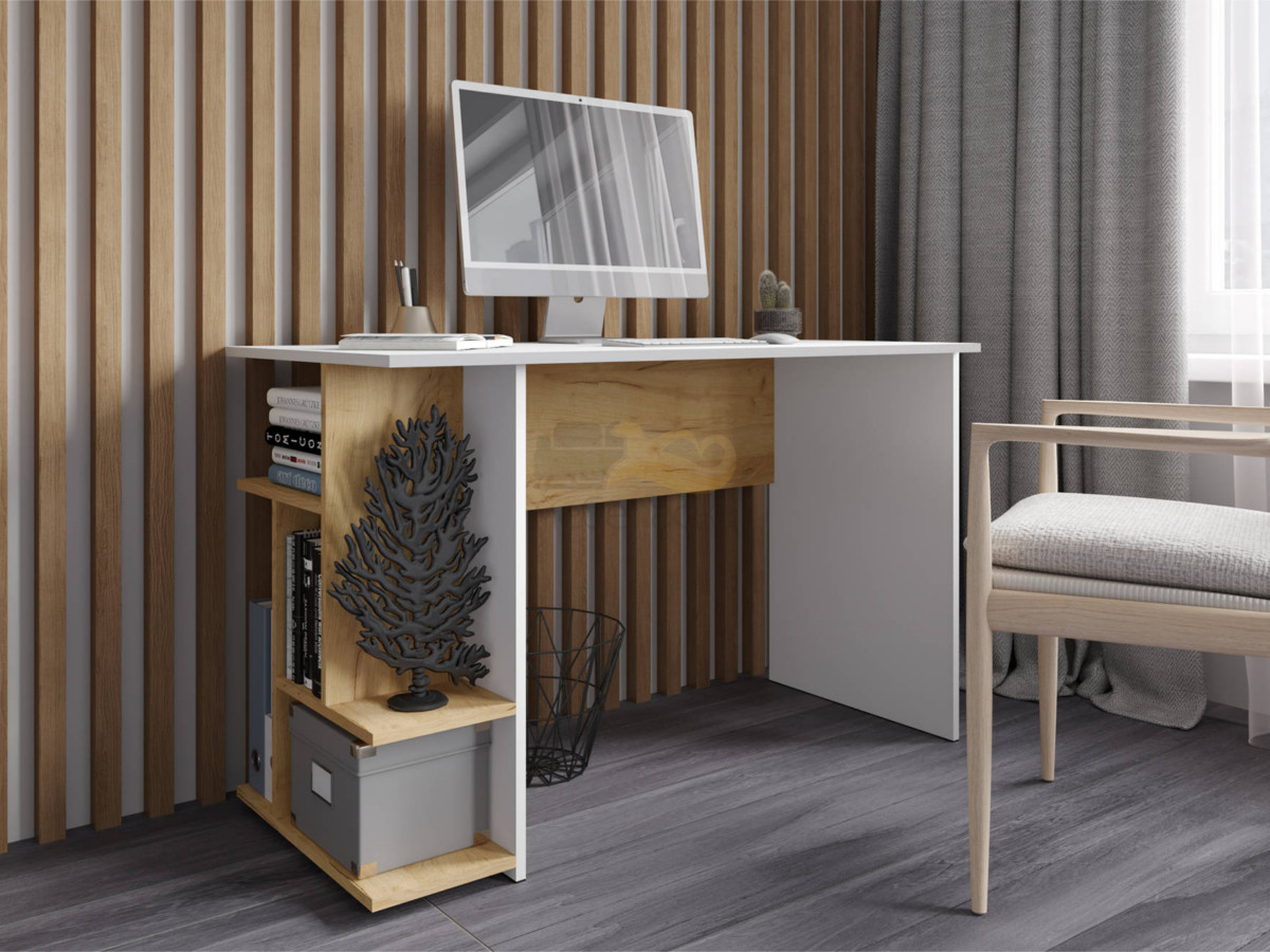 - Стол компьютерный СКМ-6 белый/дуб крафт золотой