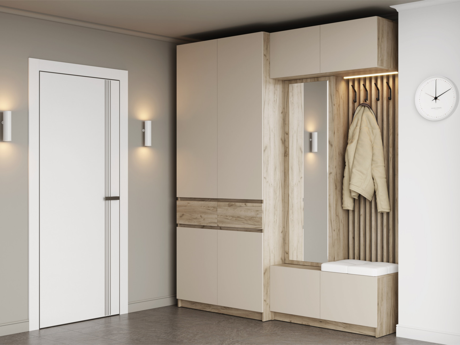 - Модульная прихожая Бостон ЛДСП кашемир с двухдверным шкафом