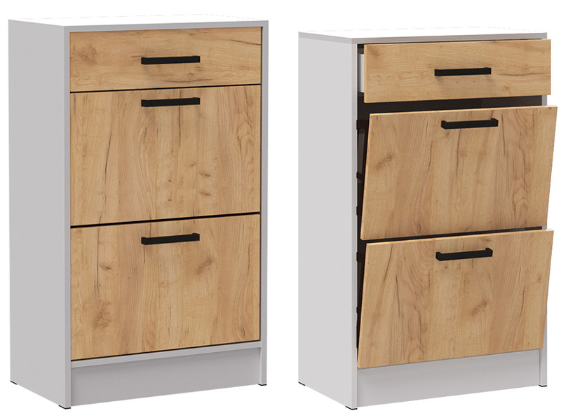 - Обувница Кевин белый/дуб крафт золотой