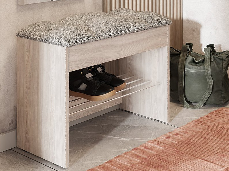 Конструктивно обувница имеет открытые полочки для хранения нескольких пар невысокой обуви и потайную, расположенную за откидной верхней крышкой нишу — для перчаток, зонтика, крема для обуви или других полезных мелочей, необходимых при выходе из квартиры.