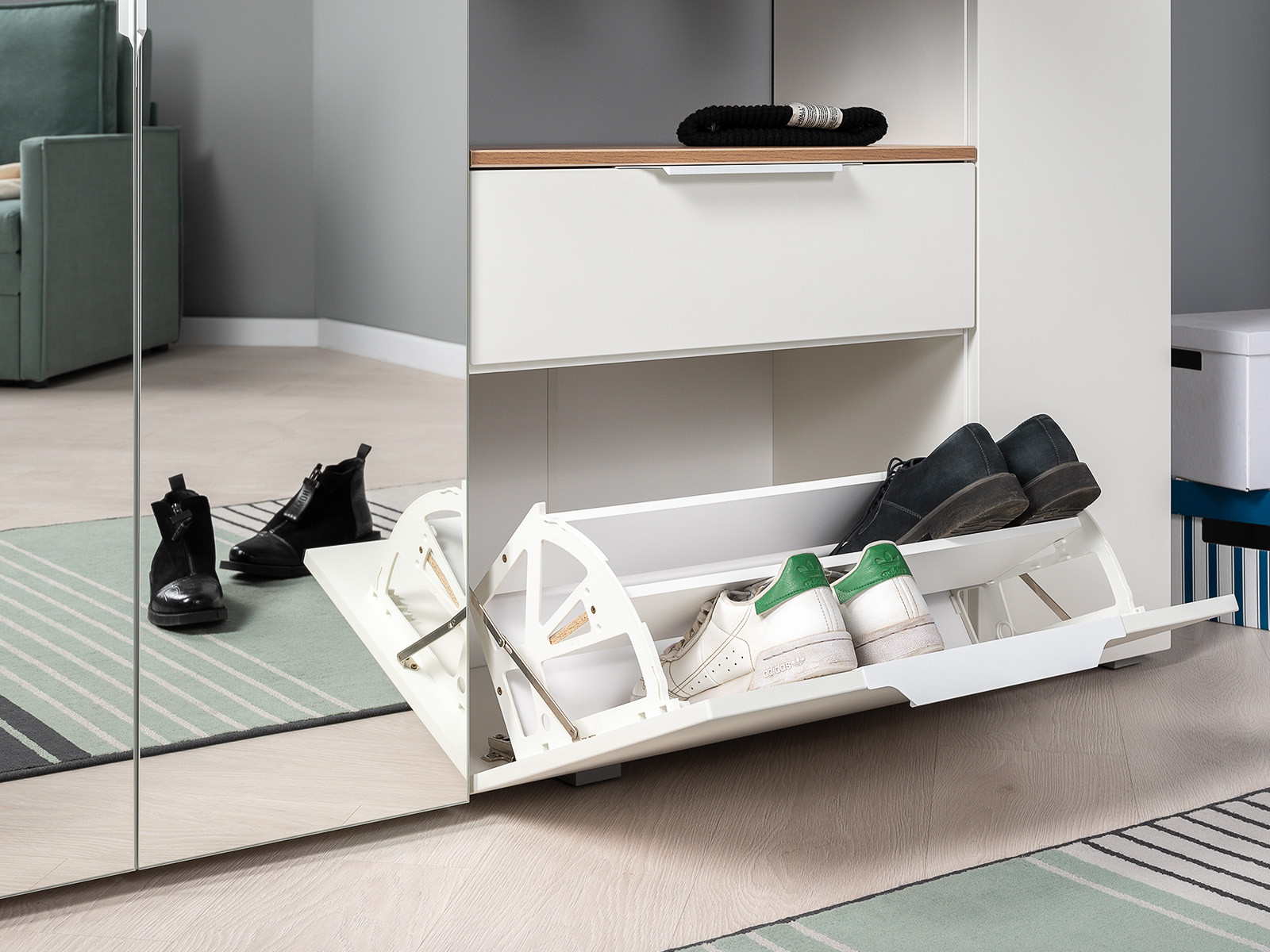 Фурнитура: Шариковые направляющие полного выдвижения, алюминиевые ручки, выдвижная вешалка
