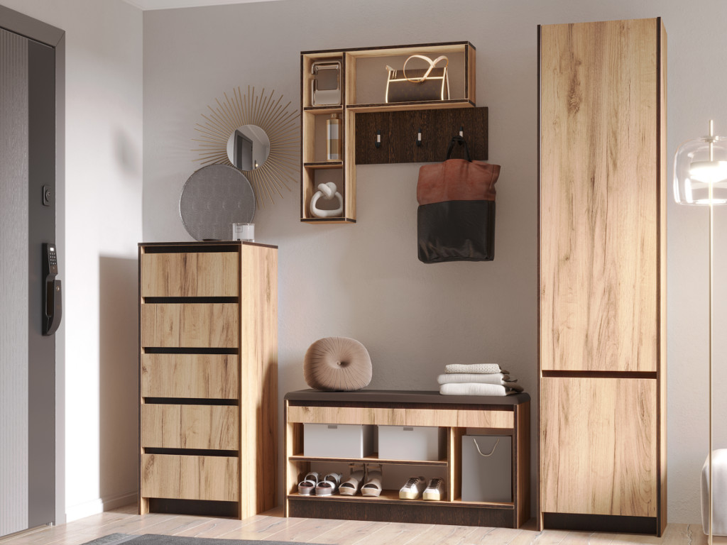 Цена за комплект: Вешалка, Комод 5 ящиков, Тумба для обуви 1, Пенал ПН-02
