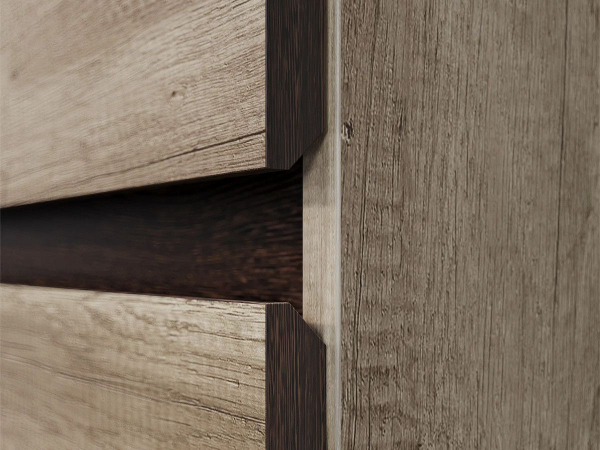 - Толщина кромки – 0,45 мм. «Дуб каньон» кромится в цвет корпуса. Фасадные части цвета «дуб каньон» кромятся цветом «венге».