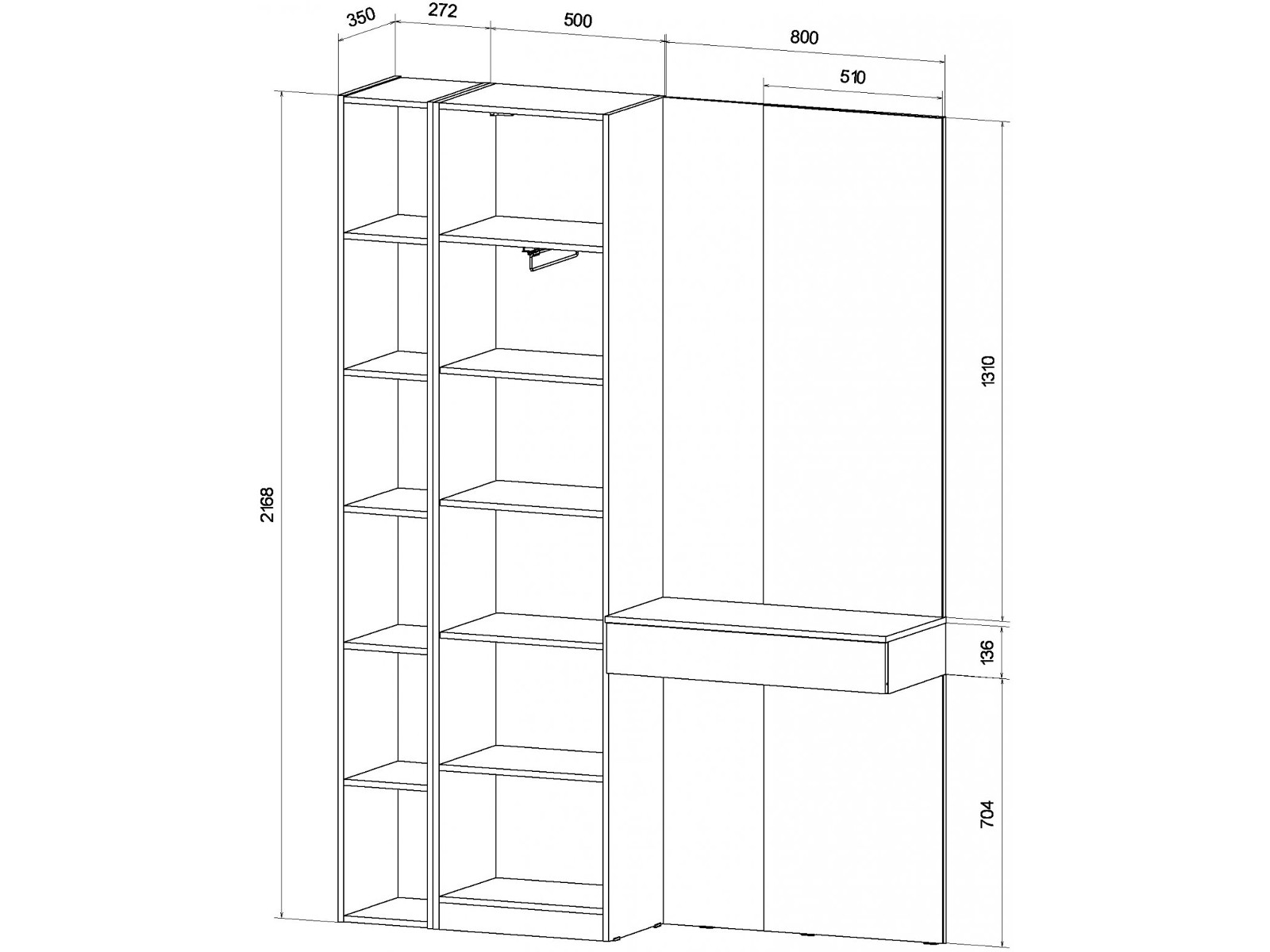 Наполнение: полки + штанга выдвижная